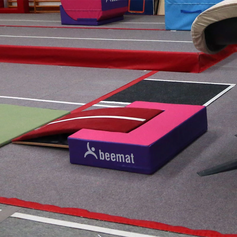 The Beemat Gymnastic Springboard Surround is designed to help build gymnasts’ confidence when performing handspring vaults and round off movements.