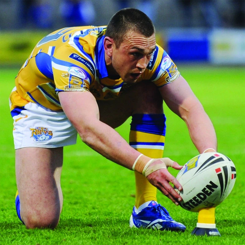 The kicking tee is adjustable and is used in both League and Union rugby.
