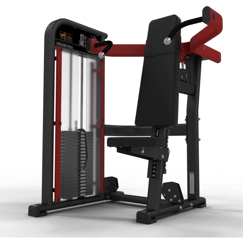 The Exigo Selectorized Shoulder Press successfully targets the user’s deltoids and triceps.