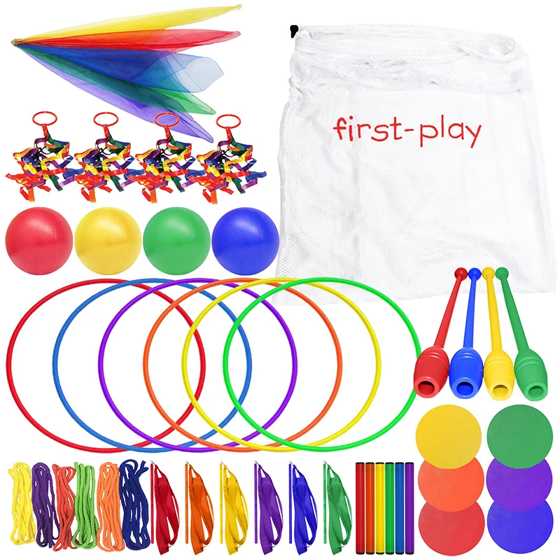 The First Play Creative Movement Kit is specifically designed to enhance dance lessons and rhythmic gymnastics for children.