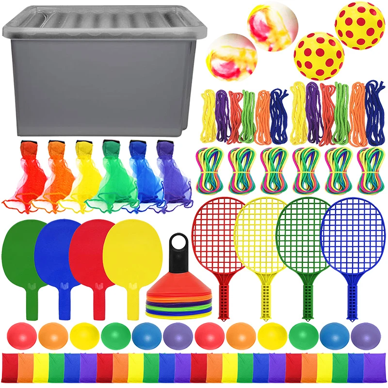 The First Play Playground Activity Tub is designed to provide hours of fun for children. It contains enough equipment to keep up to 50 kids entertained and actively engaged in physical activity.