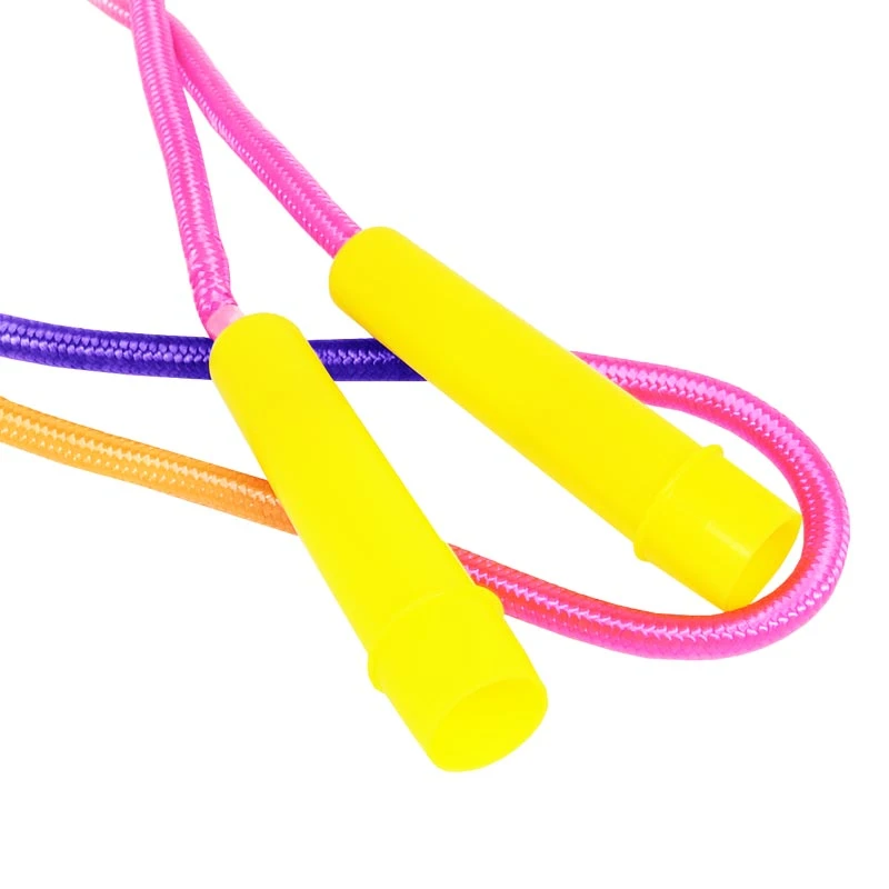 With two plastic handles and its rainbow colours, this jumping rope stands out both in your hands and when you throw it into the air.