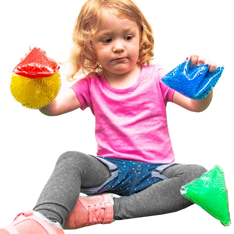 Not only can they engage with the varying colours and textures of each gel bead filled bag but they can also learn basic shapes.