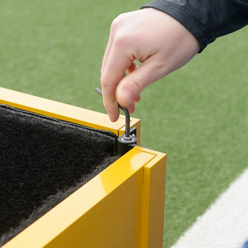 - Consists of 25mm reinforced extruded aluminium, powder coated yellow, protected by black matchwinner velour carpet.
