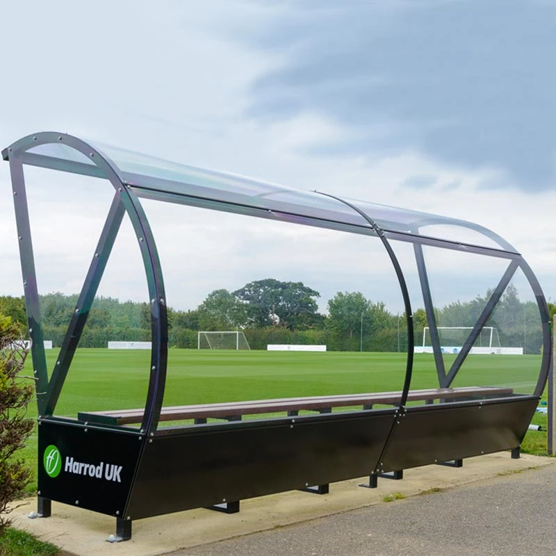Brand new aluminium Harrod Sport Panoramic Team Shelter is spacious and affordable, with curved side frames designed to improve players’ views of the pitch.