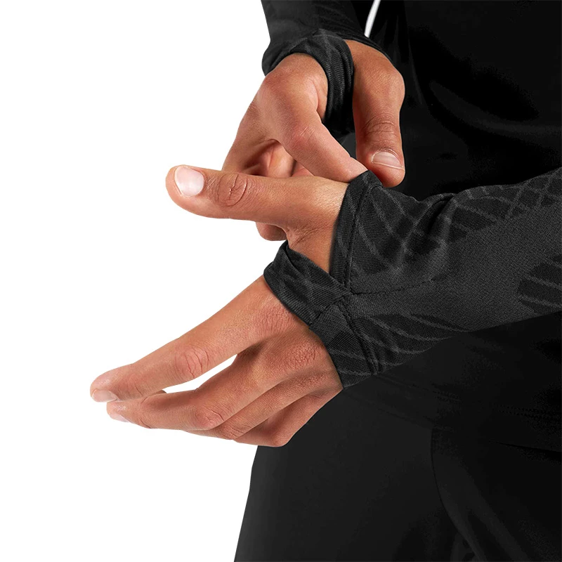 - Invisible thumb loops help hold the sleeves in place as you move, and seamlessly disappear when not in use.