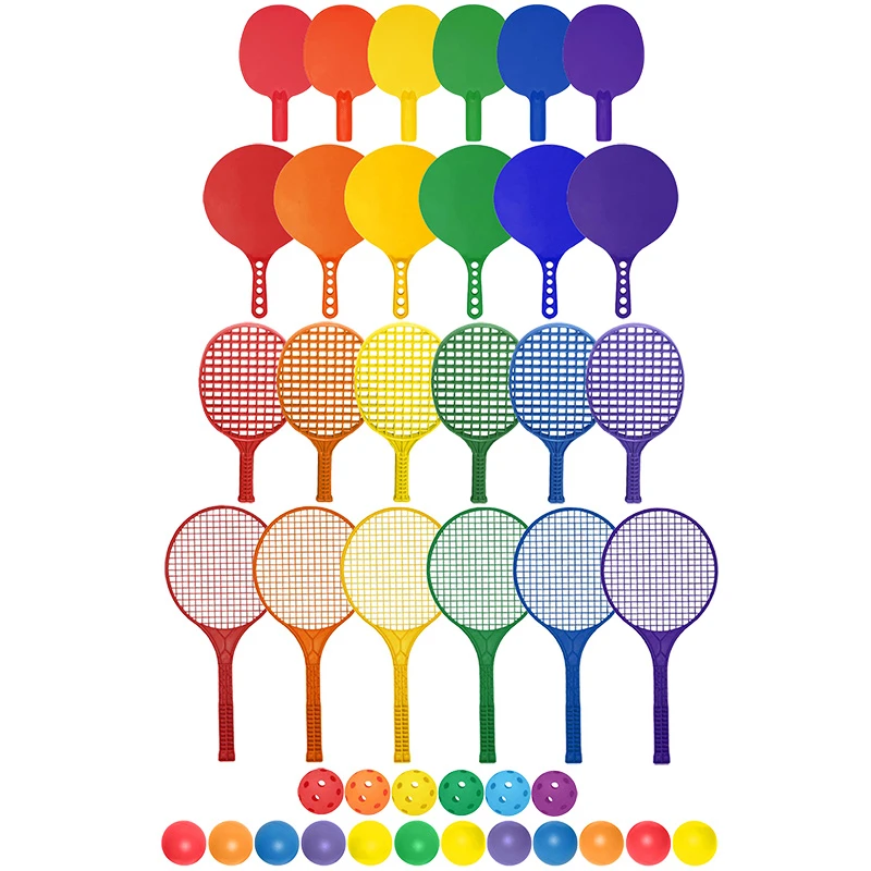 It contains 24 bats and rackets, as well as 18 balls perfect for group activities.