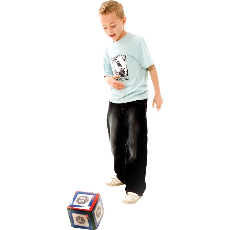 The PLAYM8 Instructional Cube is made from a soft colourful fabric.