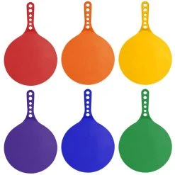 - 6 x Paddle Bats (one of each colour – Red, Yellow, Blue, Green, Purple and Orange).Â