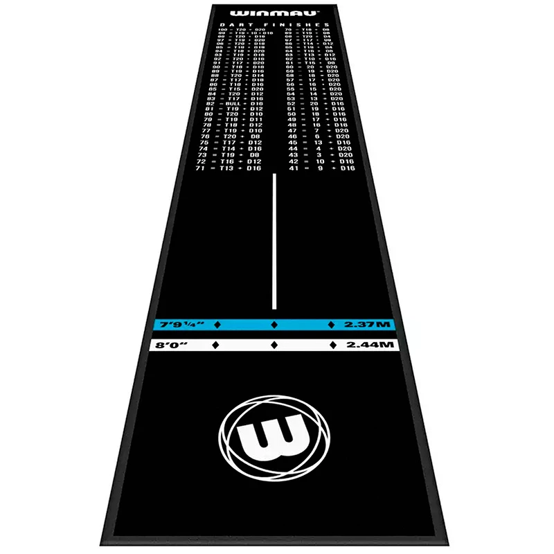 This lightweight, soft-feel fibre dart mat from Winmau adds a stylish, functional design to any oche setup. The mat includes non-slip PVC Composite edging and underlay and features official tournament specification oche measurements. The mat is printed with every finish from 100 to 41 and its lighweight design means it is easy to roll up and store away.
