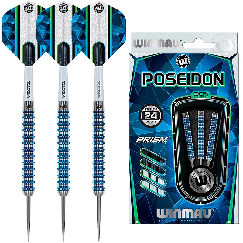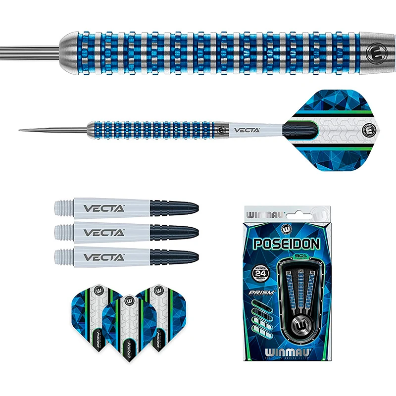 Triple precision milled for precise and consistent grip, Poseidon’s electric blue essence leads the way in modern dart design and freedom of throw.