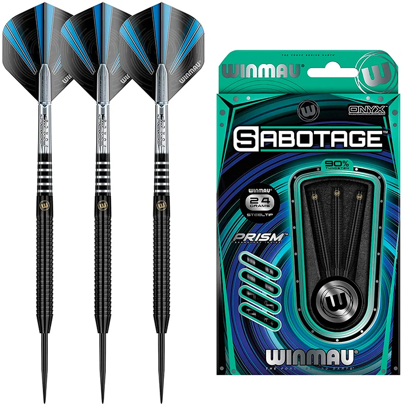 Incorporating Winmau’s renowned and aggressive Ripsaw grip technology. Sabotage delivers an unsurpassed grip control combined with popular parallel profile. New Onyx Coated version completes the iconic range.